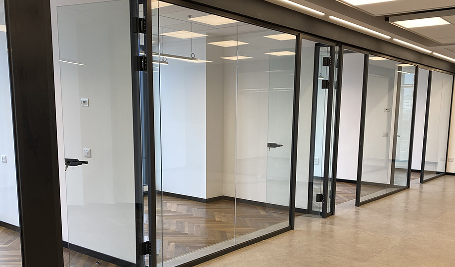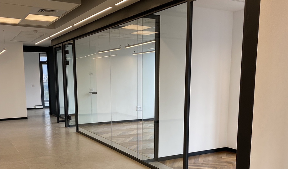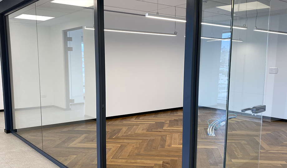 פרקט פישבורן עץ תלת שכבתי בחדרים , קירות זכוכית