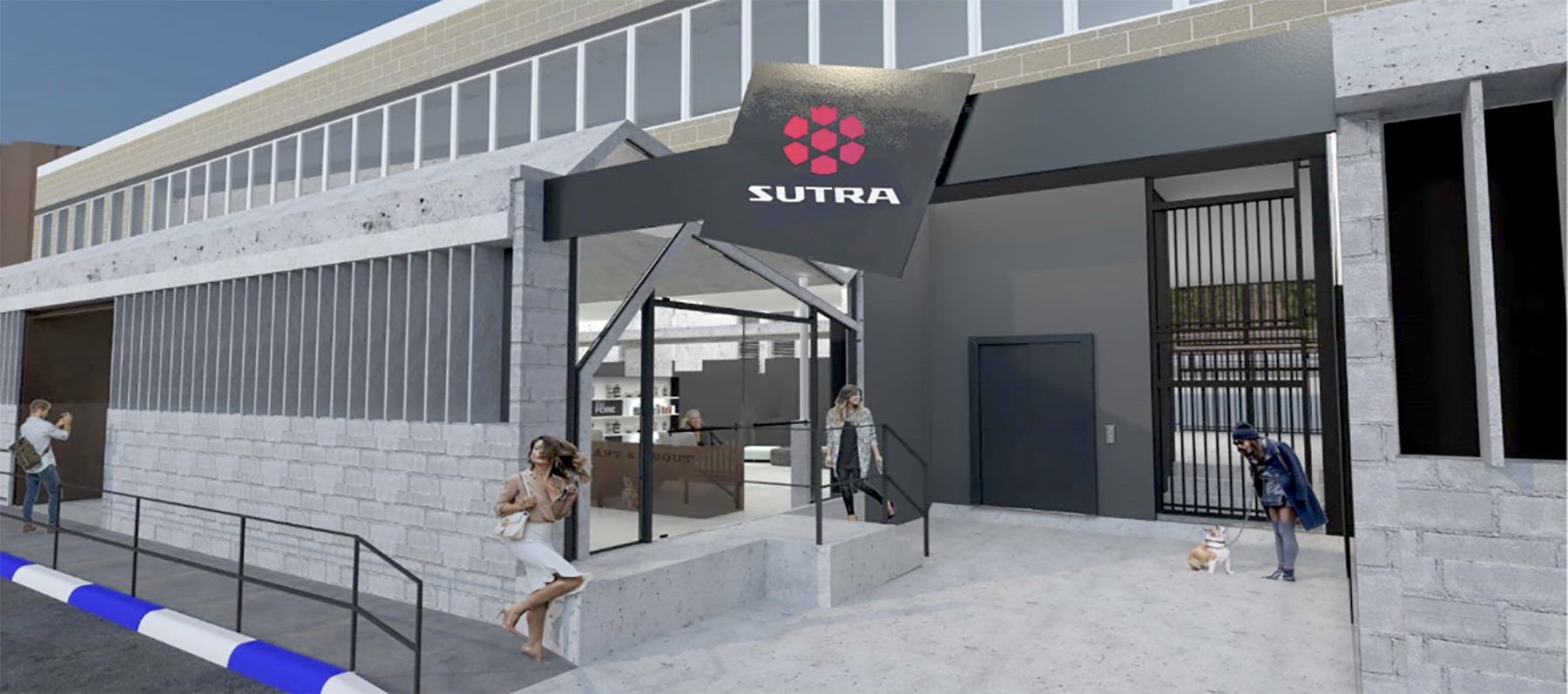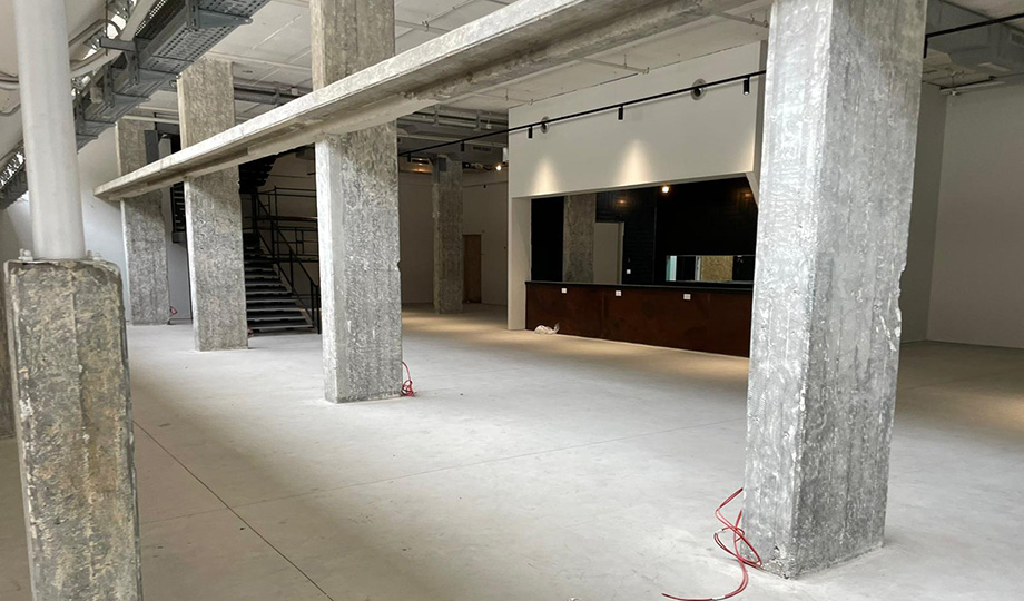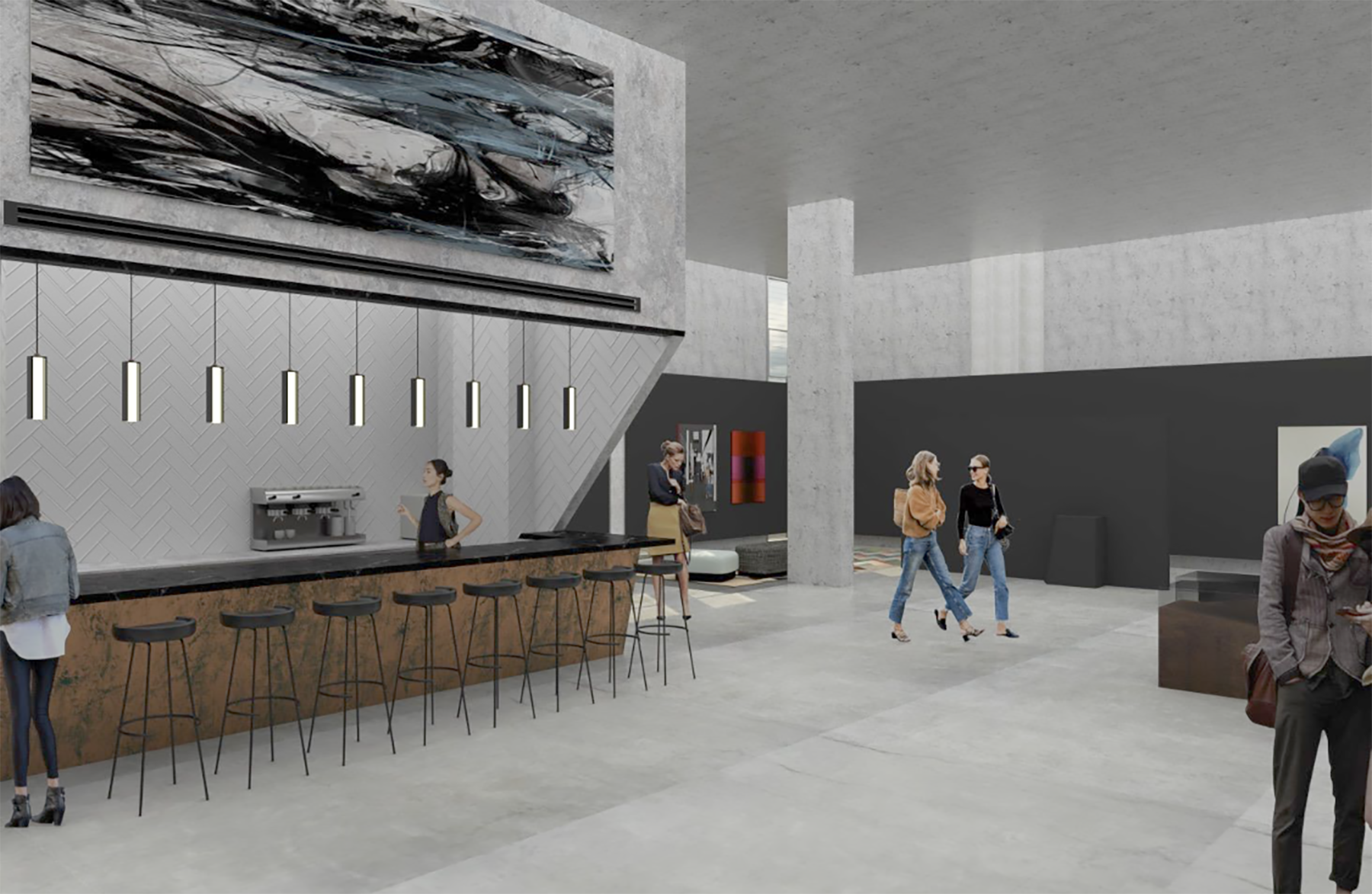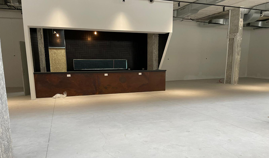 - בר קפה עם פס קר ומטבח פתוח המשמשים כאירוח.